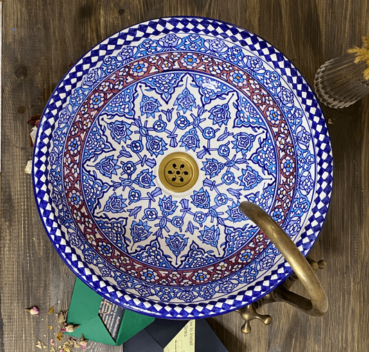 Blue Moroccan Sink – Hand-Painted Floral Ceramic Sink Bowl