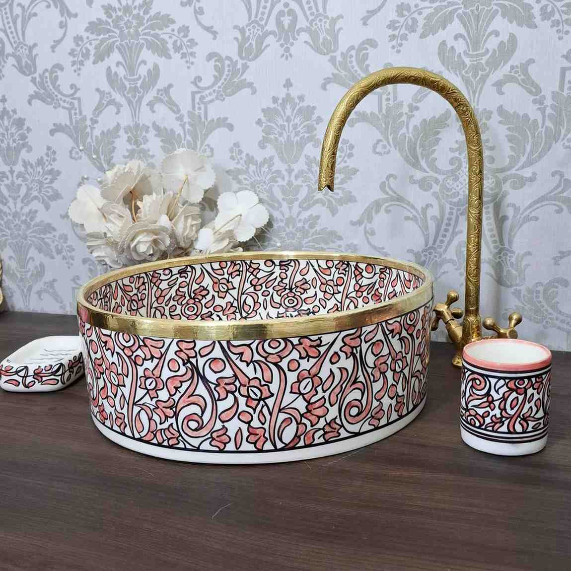 each Moroccan vessel Sink crafted by skilled artisans who are using their hand in every step from kneading the clay and shaping it to hand-painting and glazing to give a antique sink just for you.